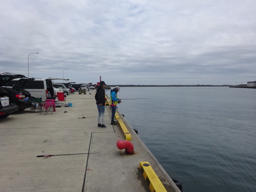 白灯堤防から竿を出す人が多いが、関係者以外立入禁止になっている。白灯堤防は沖向きにやや大きなテトラが入っており、イシモチ・カレイ・アイナメ・ソイ・ウミタナゴ・クロダイ・スズキなどが釣れる。港内の岸壁では、サビキ釣りでアジ・サバ・イワシなどが釣れる。なお港内は駐車禁止になっており、釣り人は港の手前に駐車している。